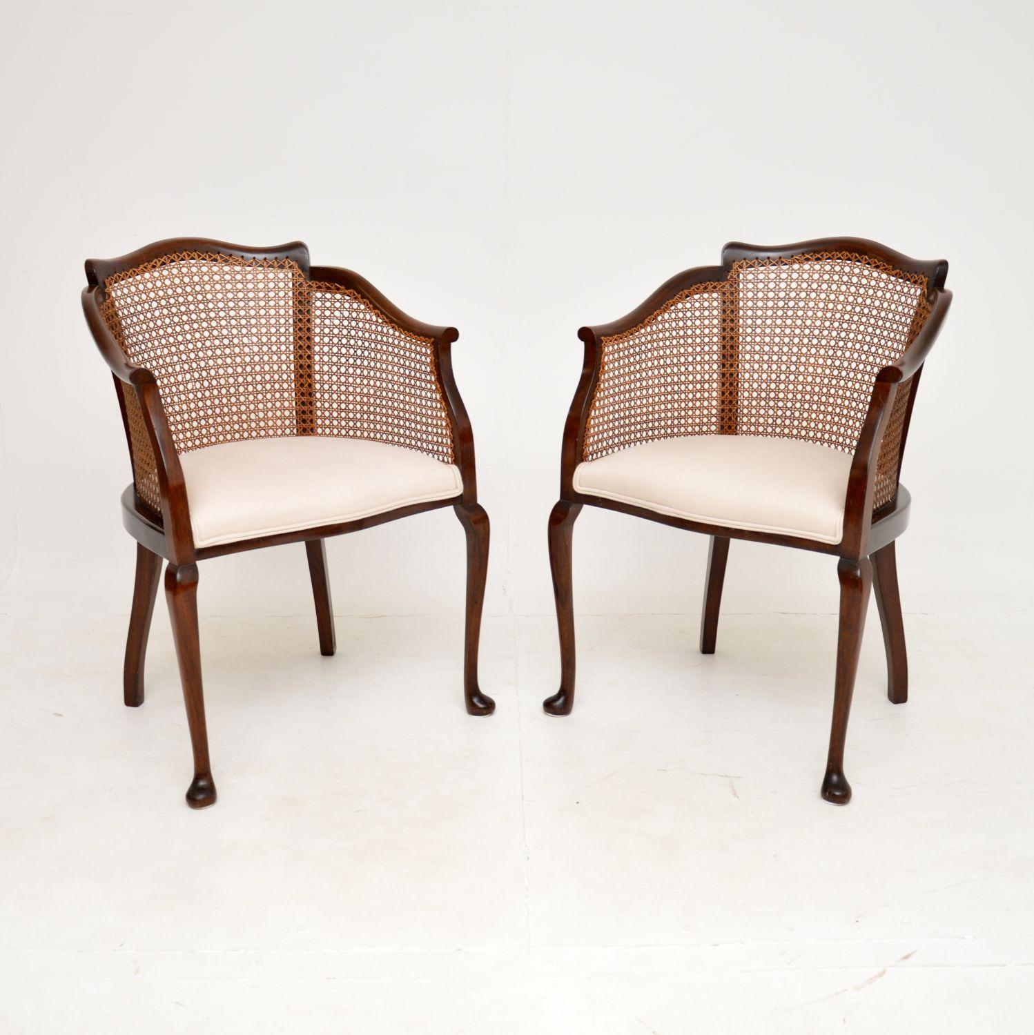 Pair of Antique Edwardian Mahogany Cane Back Armchairs