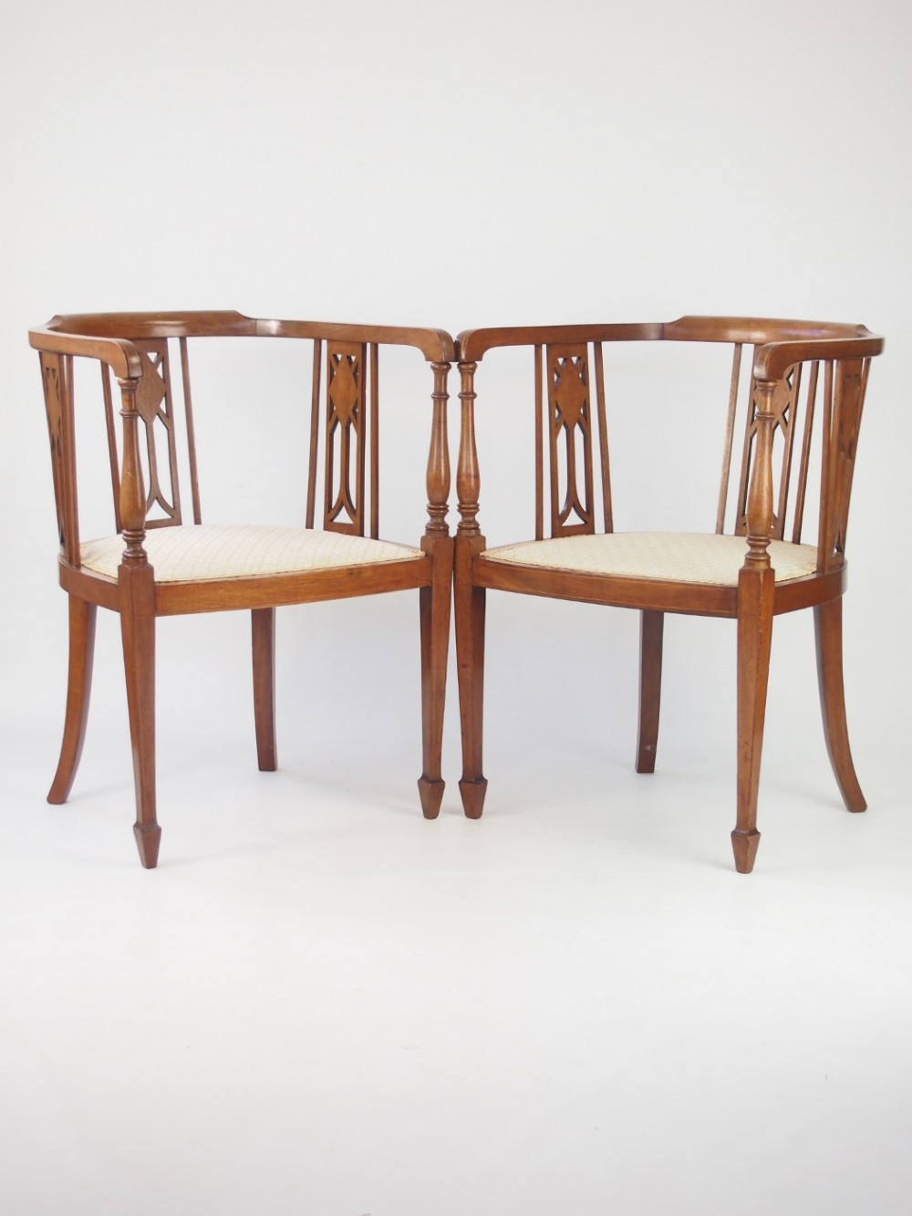 Pair of Antique Edwardian Mahogany Tub Chairs c.1910 (1 of 1)