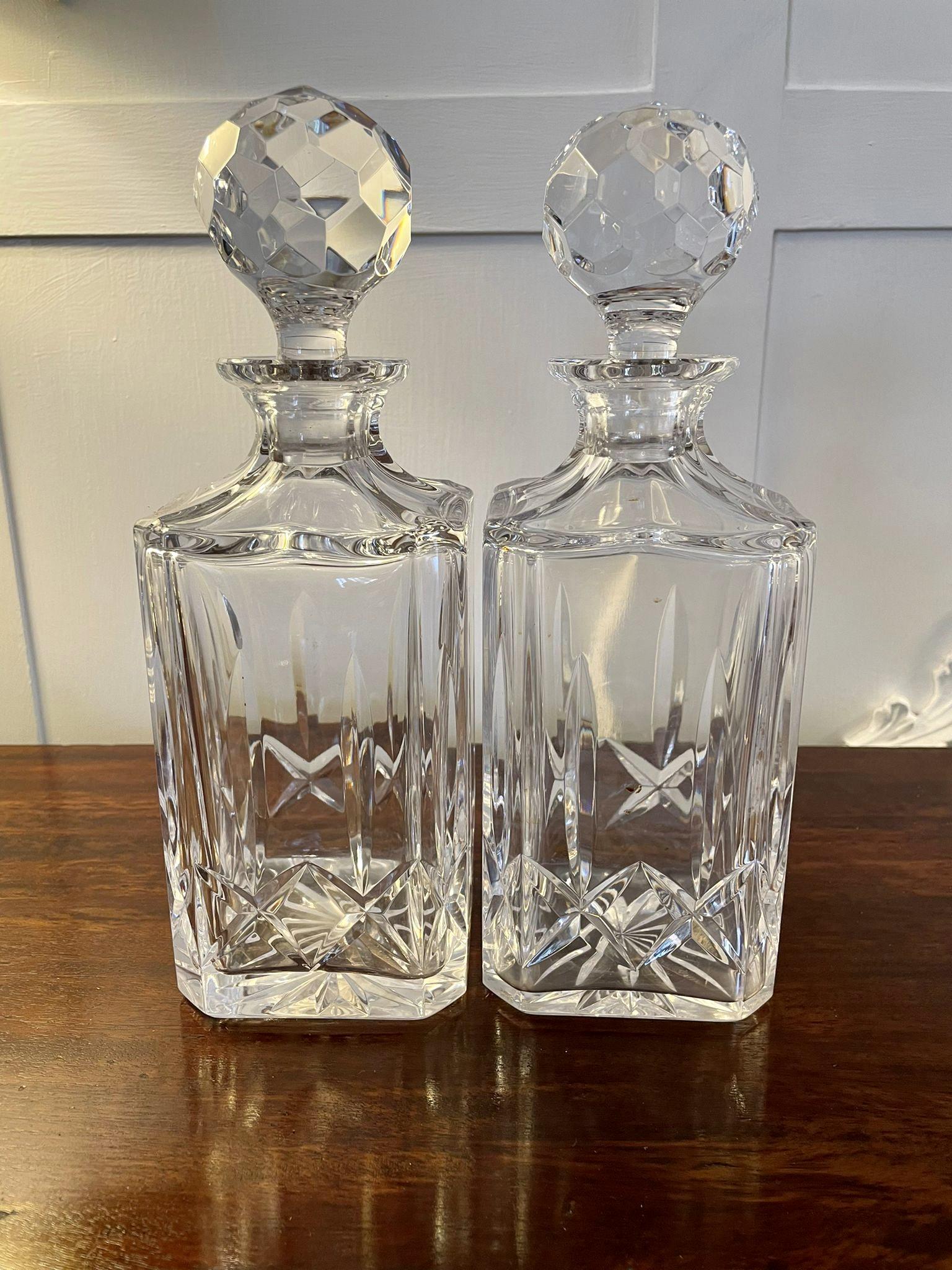 Pair of Antique Edwardian Quality Cut Glass Decanters