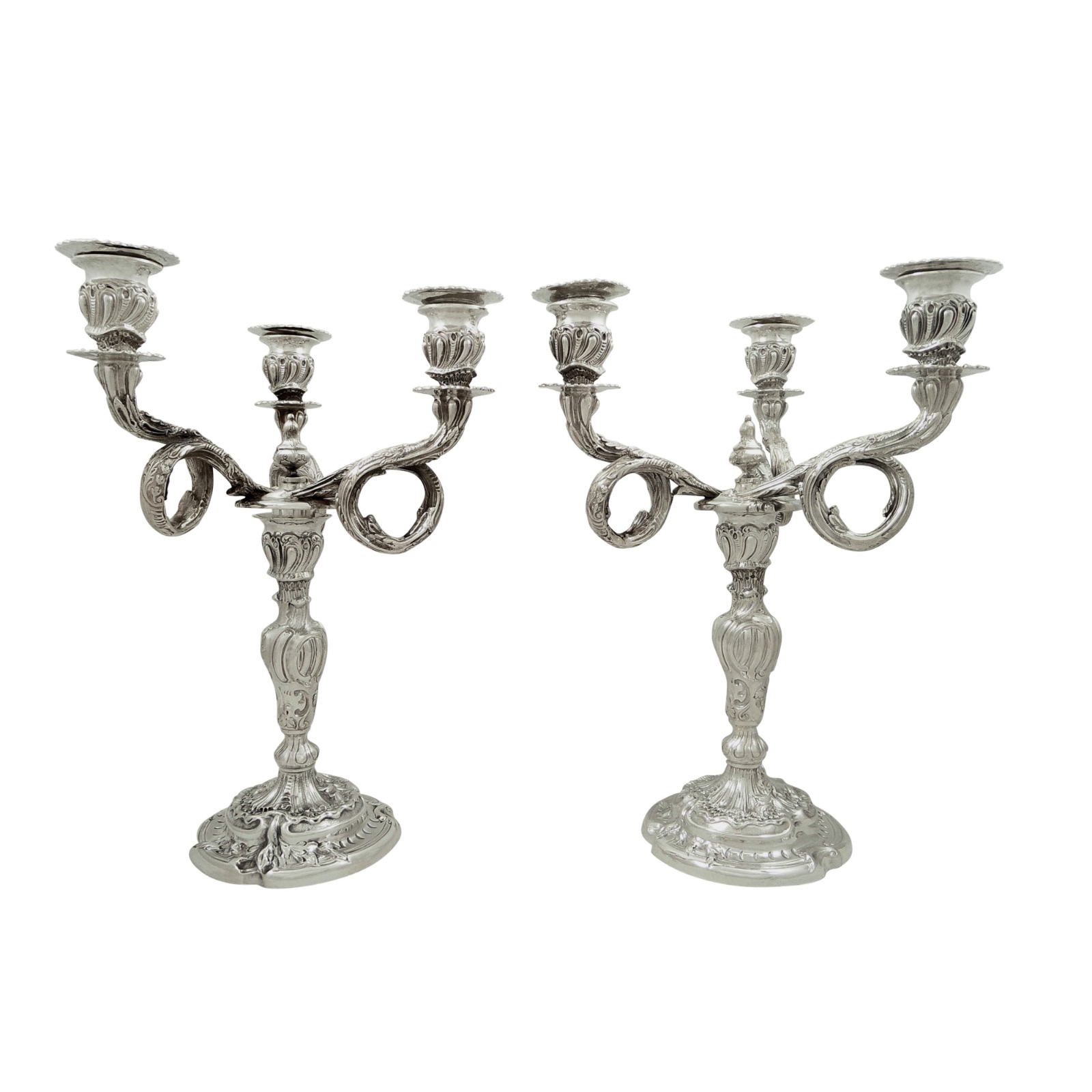 Pair of Antique Edwardian Scottish Sterling Silver Candelabra - Glasgow 1903