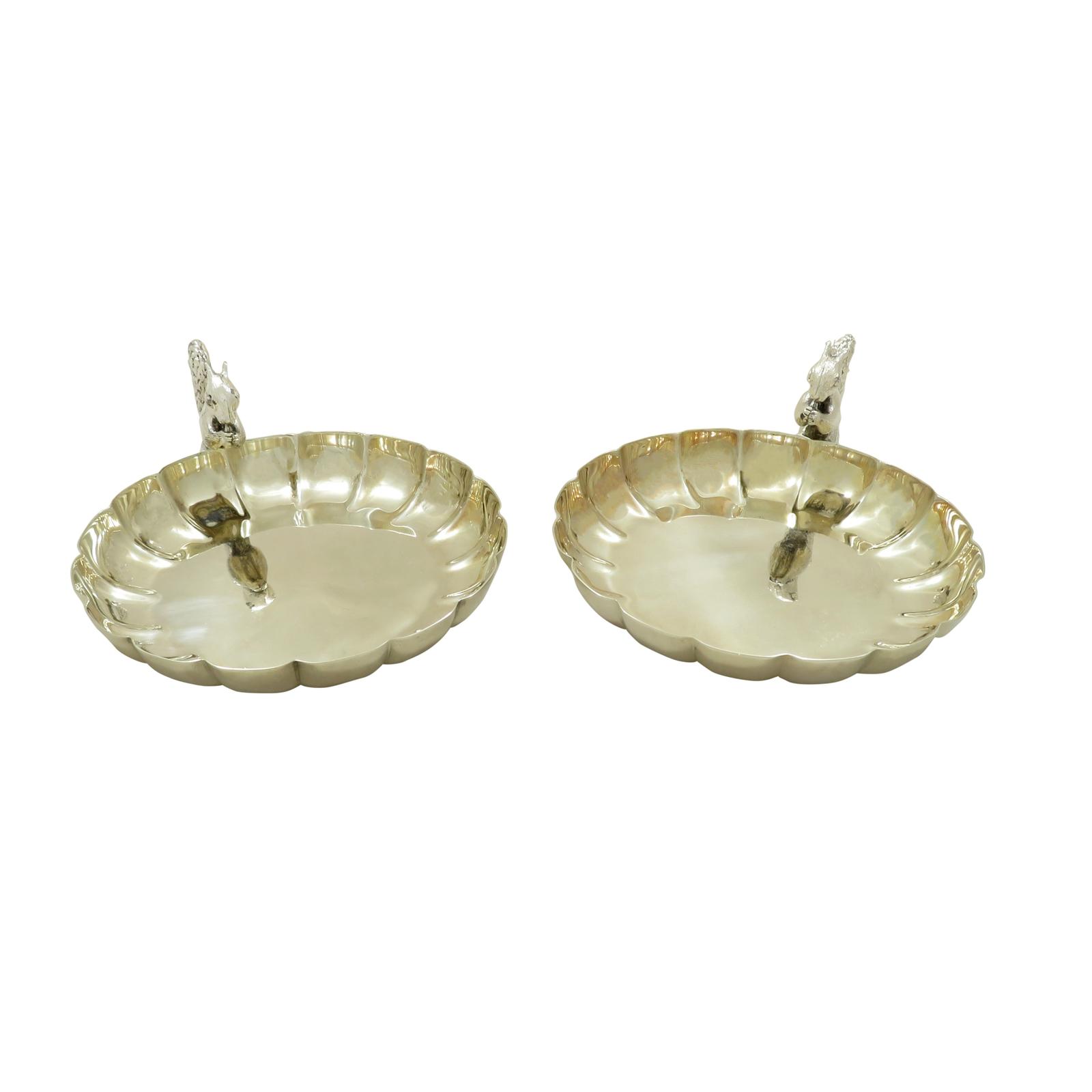 Pair of Antique Edwardian Silver Plated Squirrel Nut Dishes / Bowls c.1900