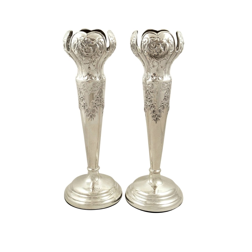 Pair of Antique Edwardian Sterling Silver 10' Vases 1905