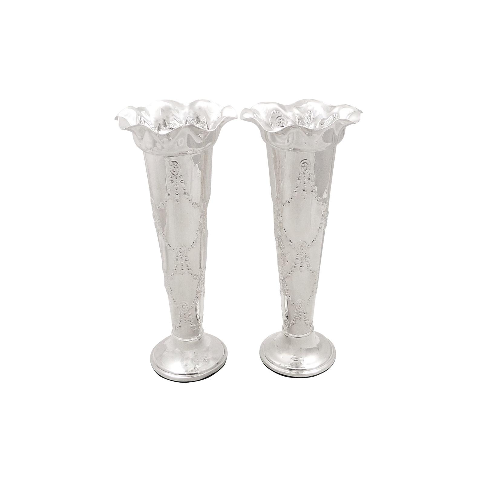 Pair of Antique Edwardian Sterling Silver 8" Vases 1903