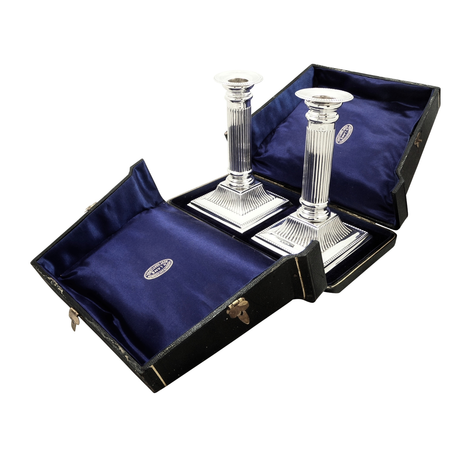 Pair of Antique Edwardian Sterling Silver Candlesticks in Case 1903