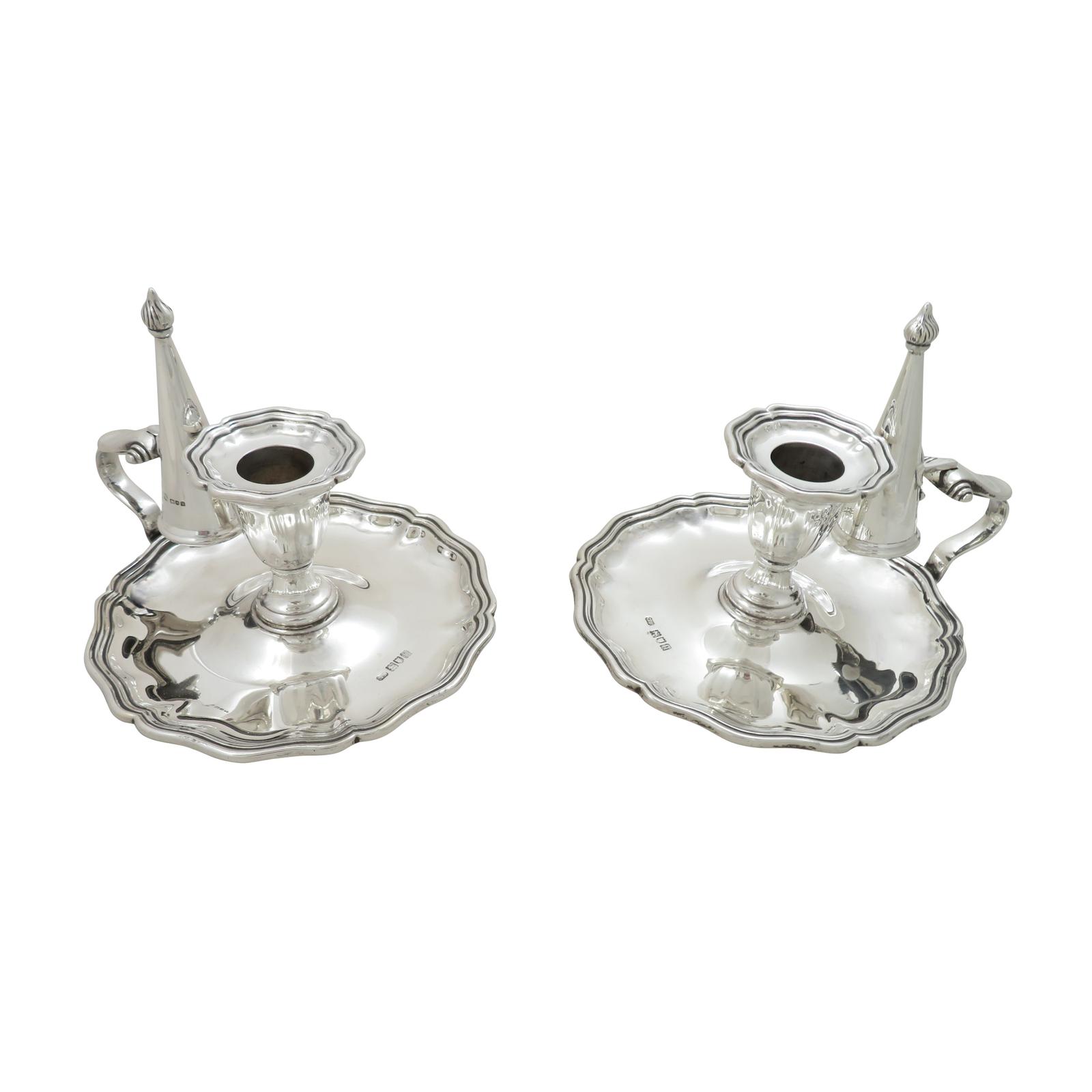 Pair of Antique Edwardian Sterling Silver Chambersticks 1908