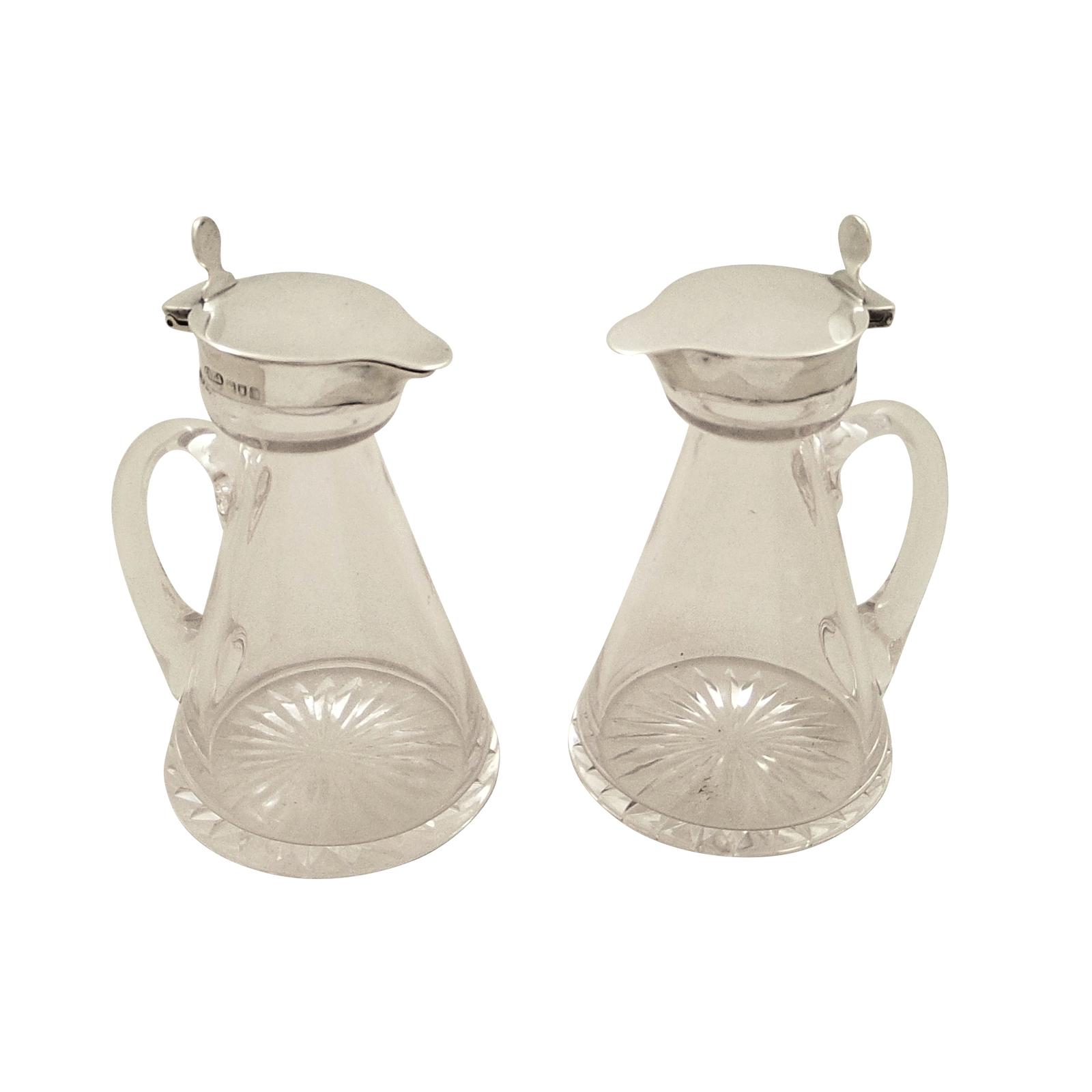 Pair of Antique Edwardian Sterling Silver & Glass Whisky Noggins / Jugs - Asprey 1906