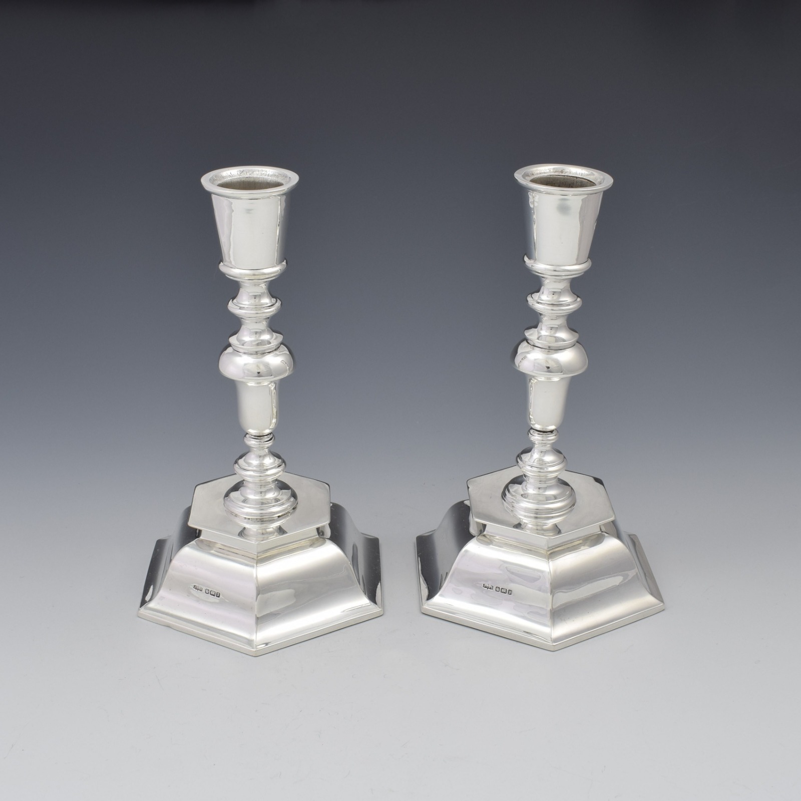 Pair of Antique Edwardian Sterling Silver Hexagonal Candlesticks