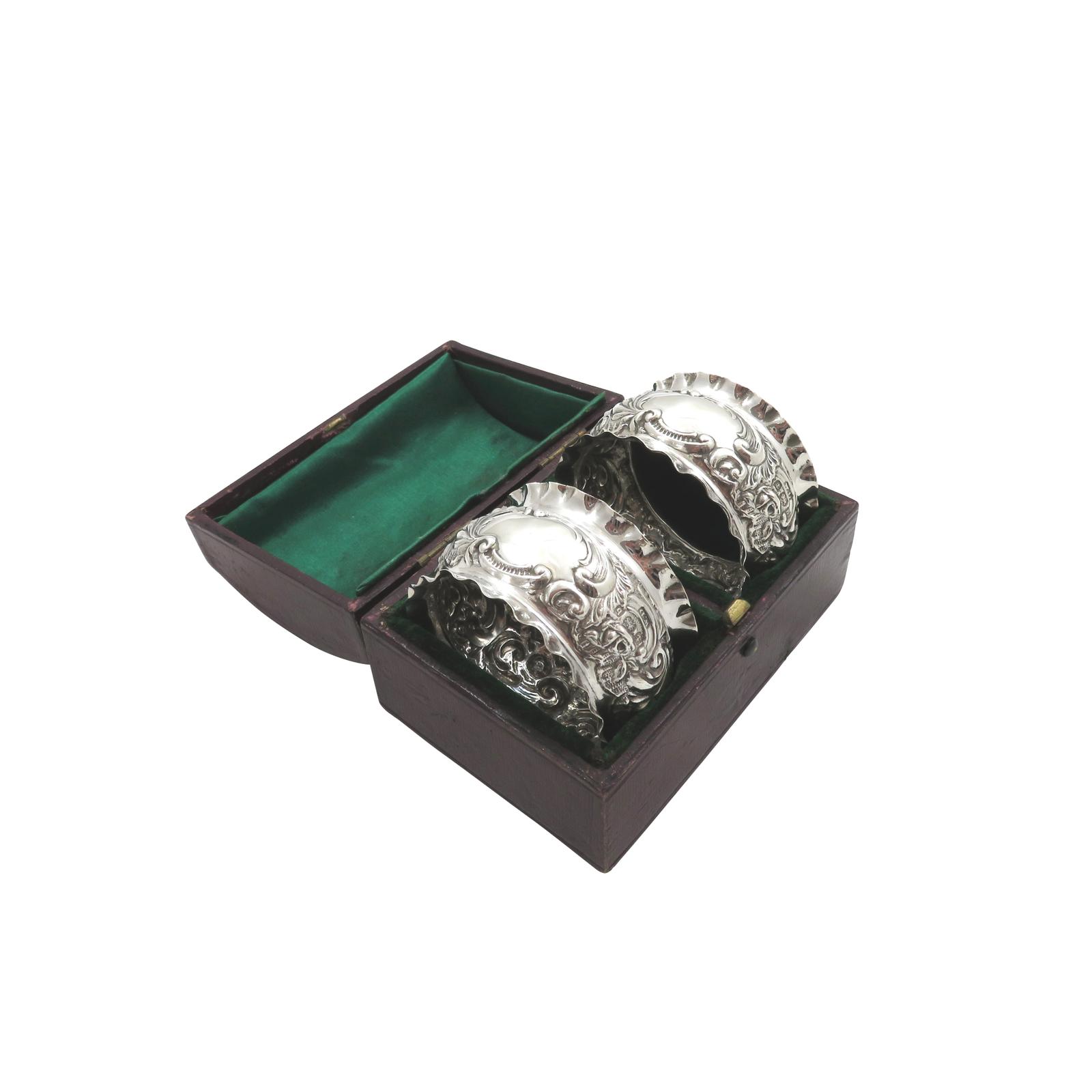 Pair of Antique Edwardian Sterling Silver Napkin Rings in Case 1901