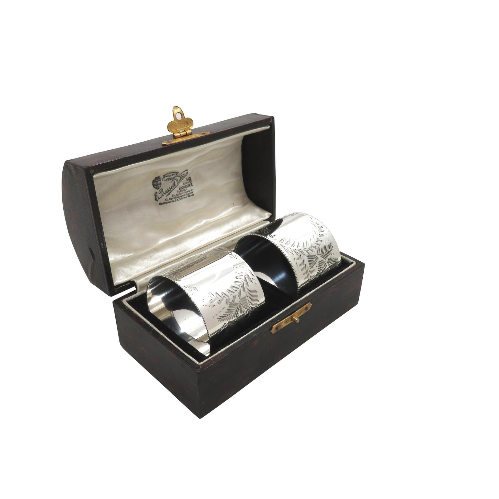 Pair of Antique Edwardian Sterling Silver Napkin Rings in Case 1902/1905
