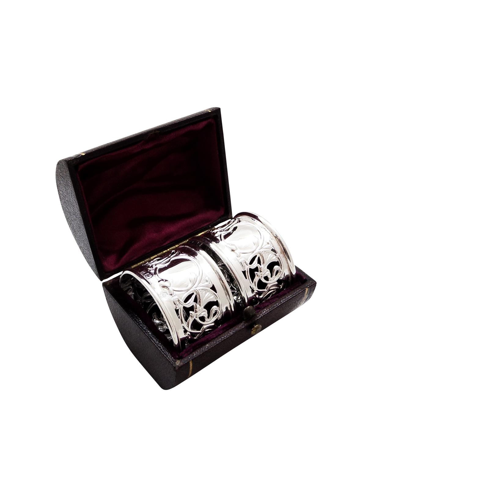 Pair of Antique Edwardian Sterling Silver Napkin Rings in Case 1903