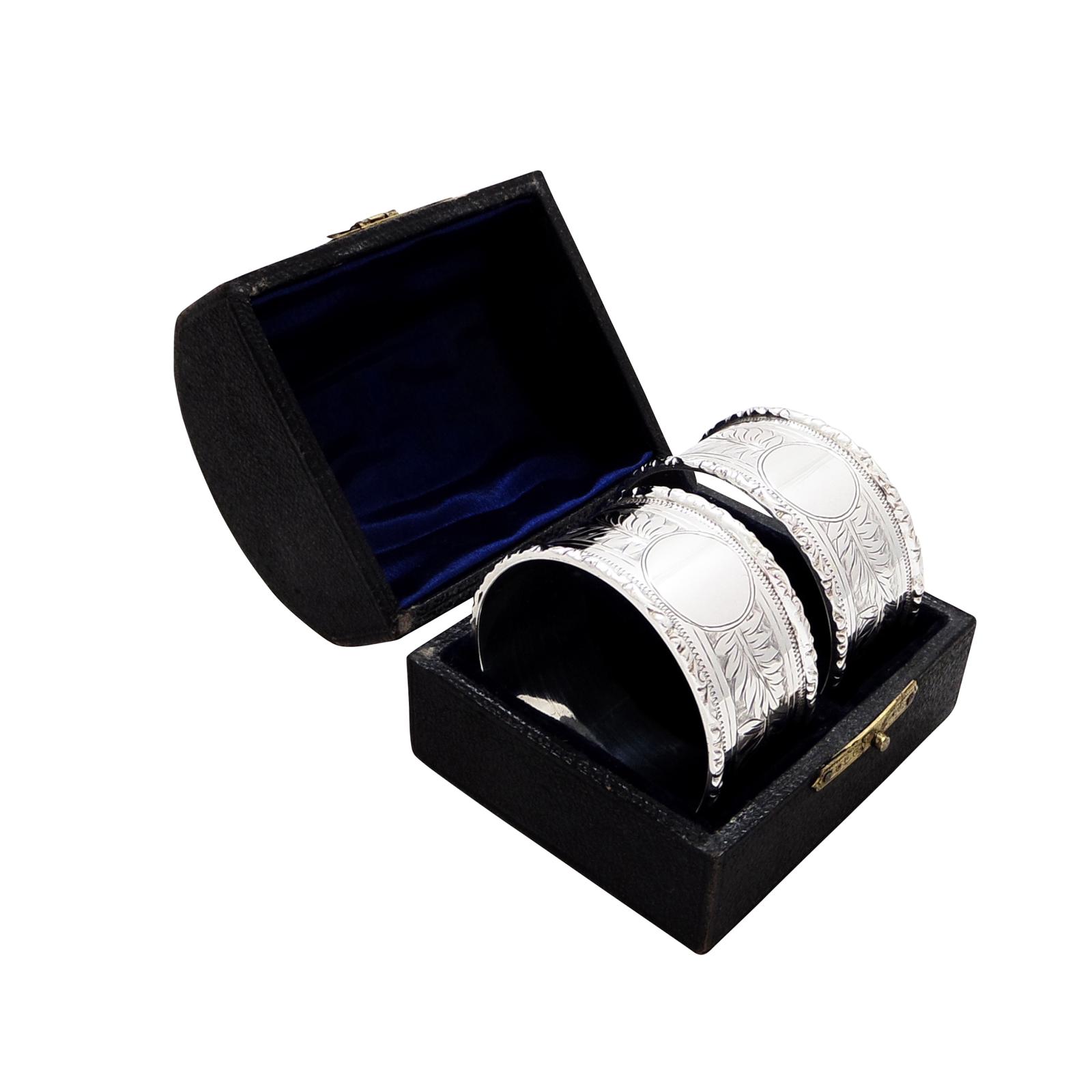 Pair of Antique Edwardian Sterling Silver Napkin Rings in Case 1908