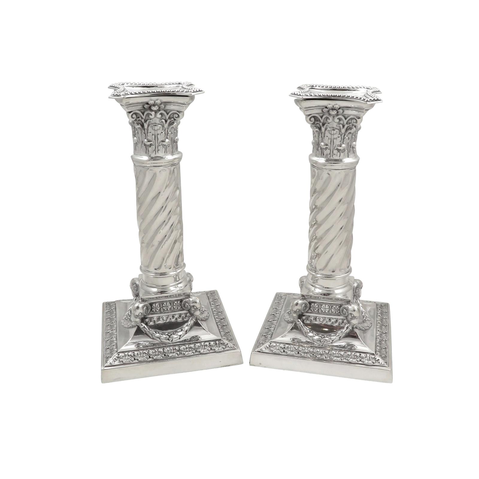 Pair of Antique Edwardian Sterling Silver 'Rams Head' Candlesticks 1902