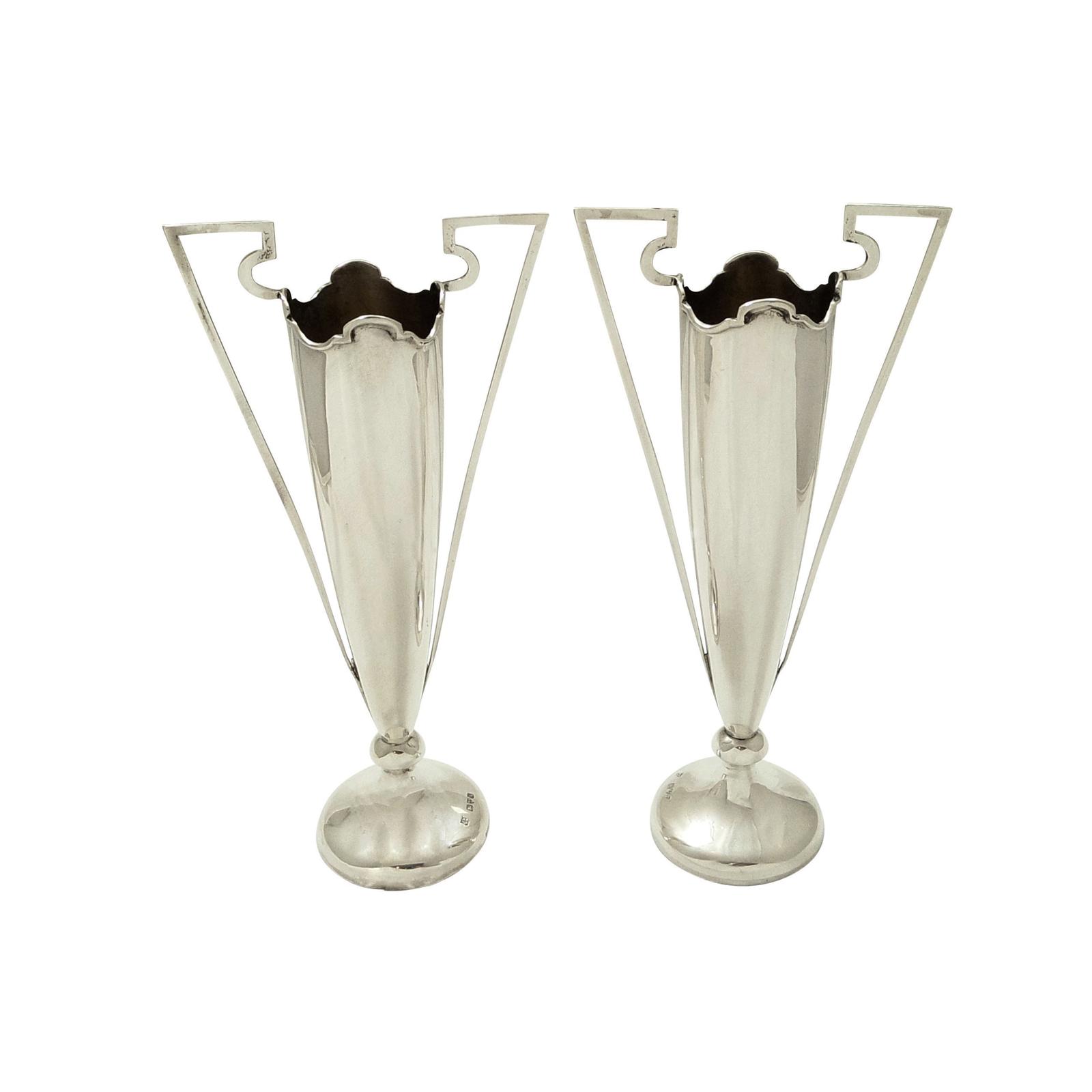 Pair of Antique Edwardian Sterling Silver Vases 1908