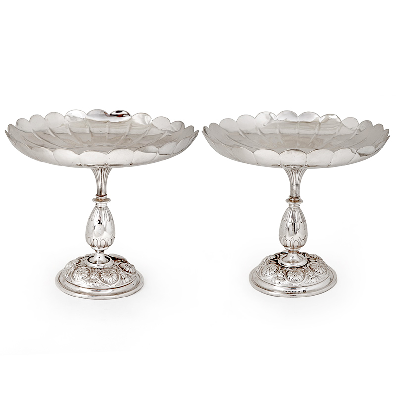 Pair of Antique Elkington Silver Plated Comports with Fluted Scalloped Bowls