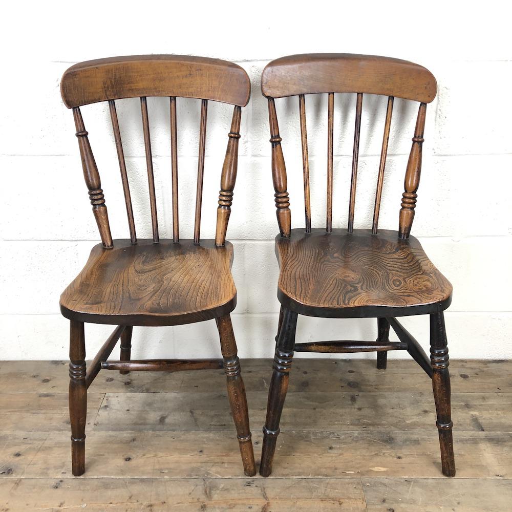 Pair of Antique Elm Farmhouse Kitchen Chairs