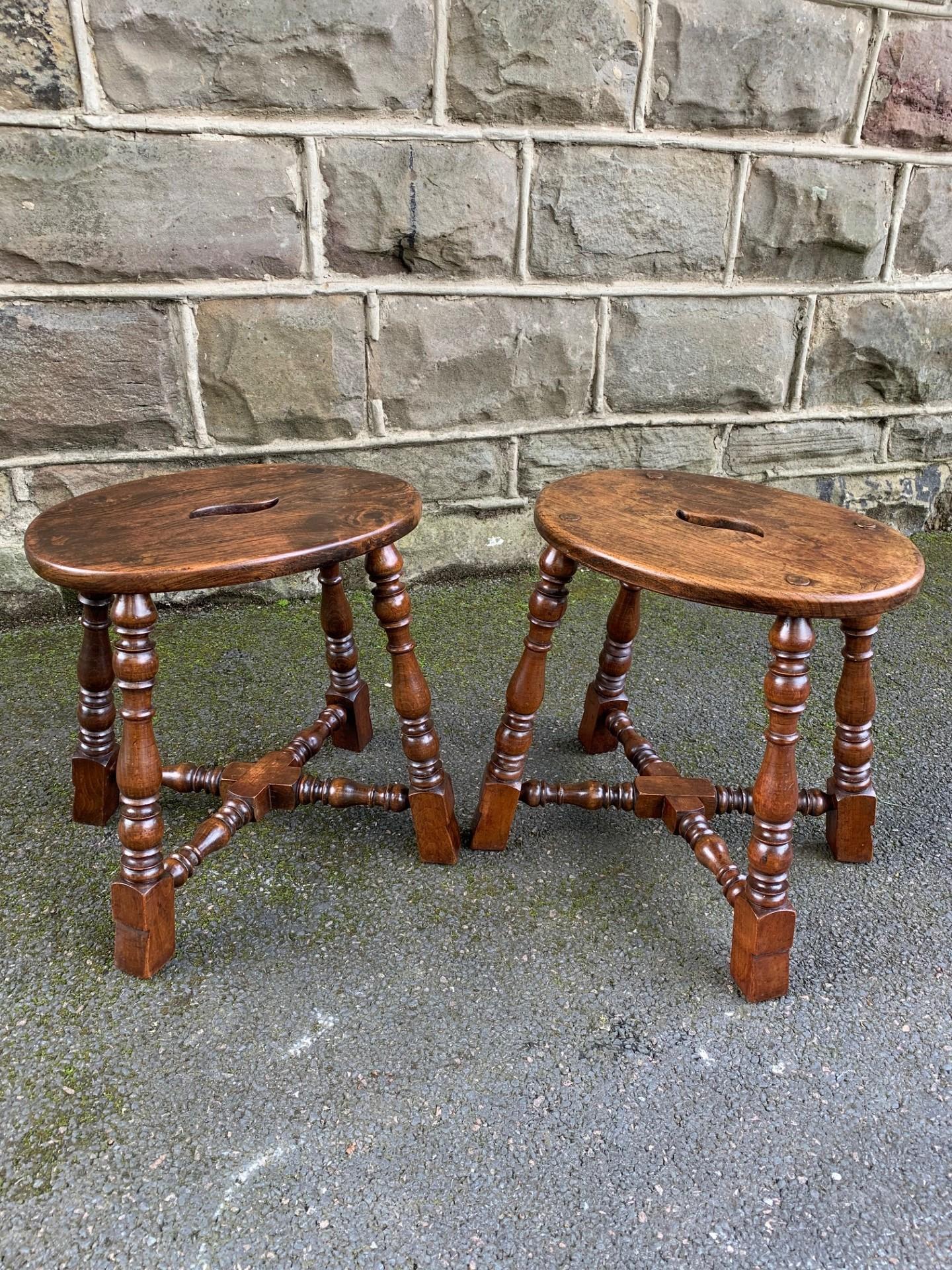 Pair of Antique Elm Kitchen Stools