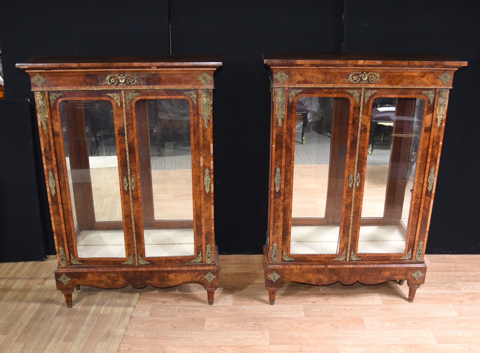 Pair of Antique English Burr Walnut Victorian Pier Cabinets c.1890