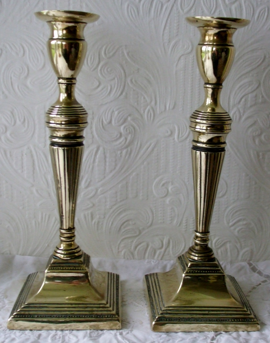 Pair of Antique English Georgian Brass Candlesticks C.1780