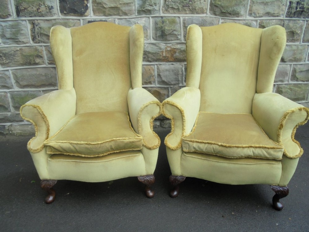 Pair of Antique English Upholstered Wing Armchairs c.1910