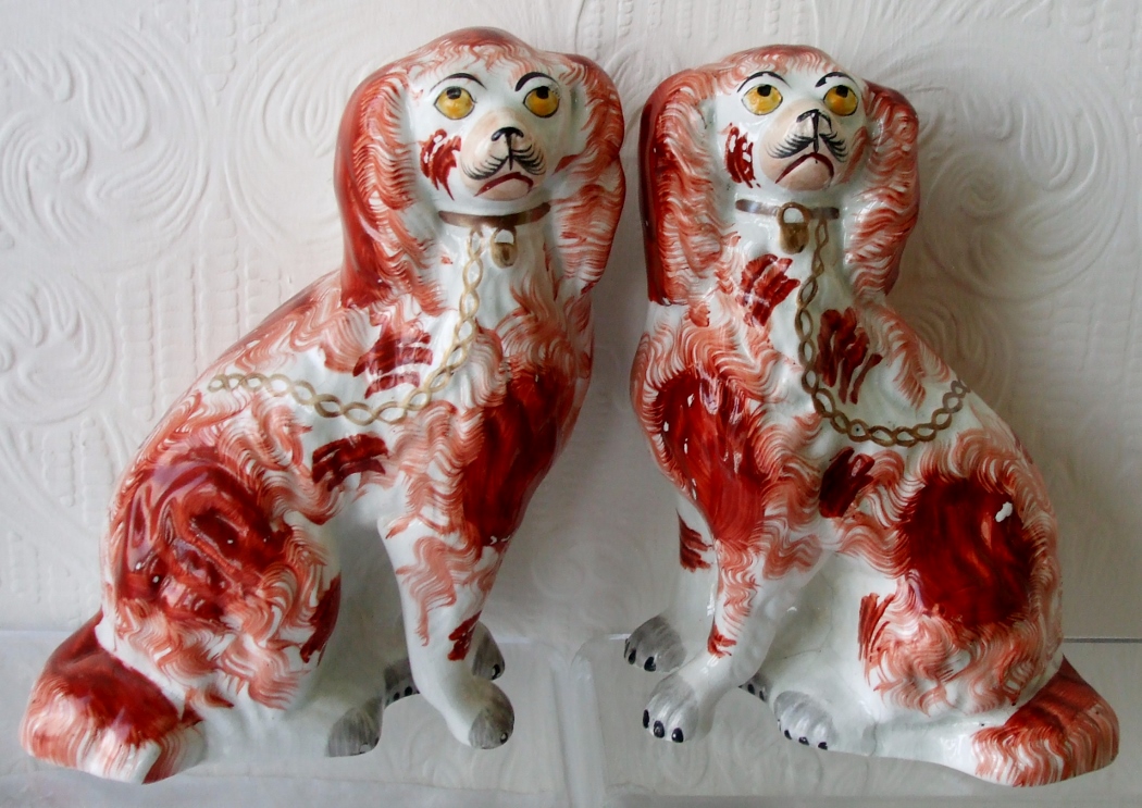 Pair of Antique English Victorian Staffordshire Pottery "Comforter" Spaniels ~ H 2474 ~ H 2475