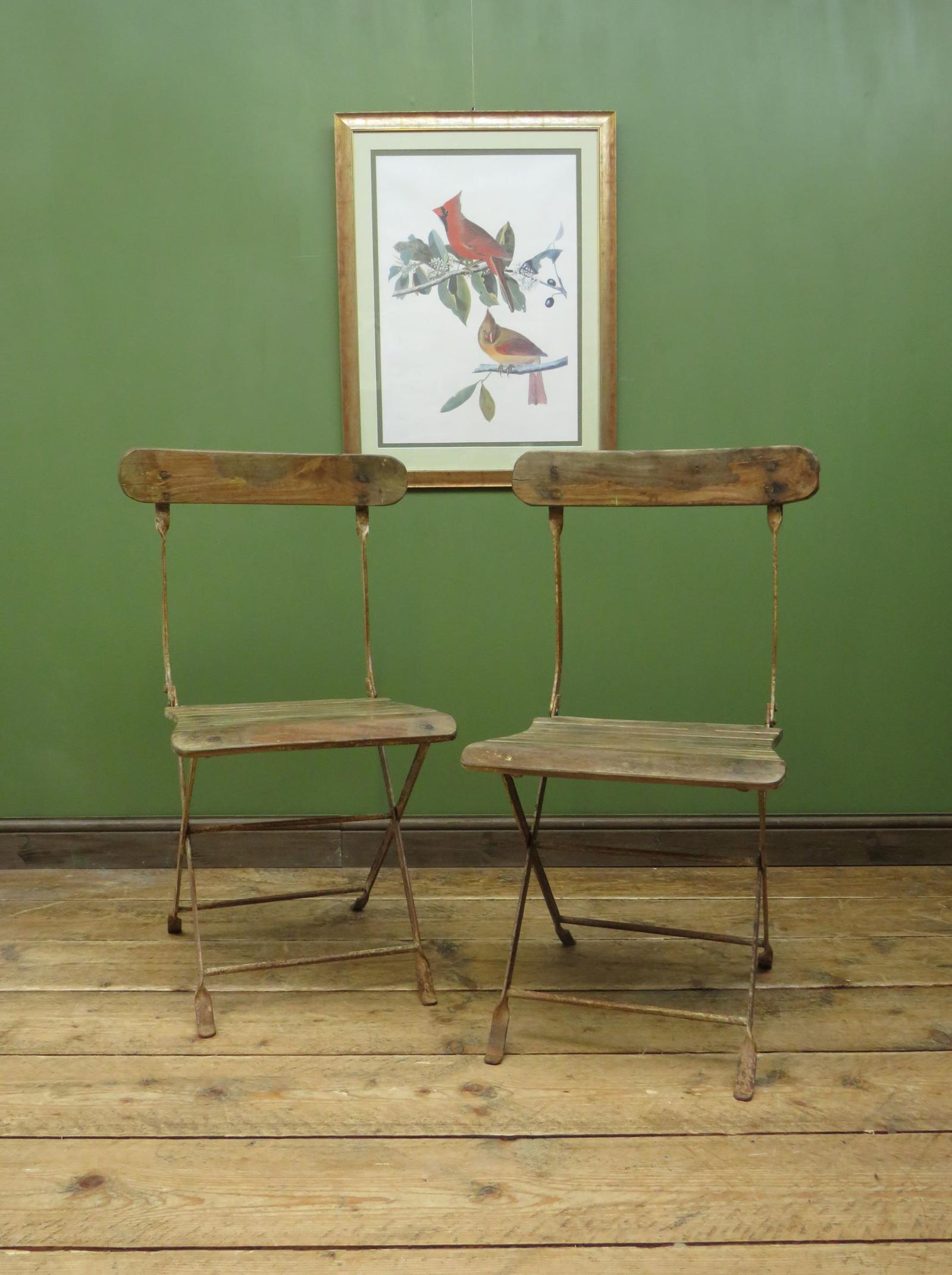 Pair of Antique Folding French Country Garden or Bistro Chairs, Timeworn Patina