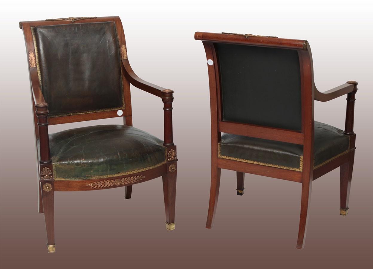 Pair of Antique French Armchairs from the 19th Century in Empire Style Mahogany