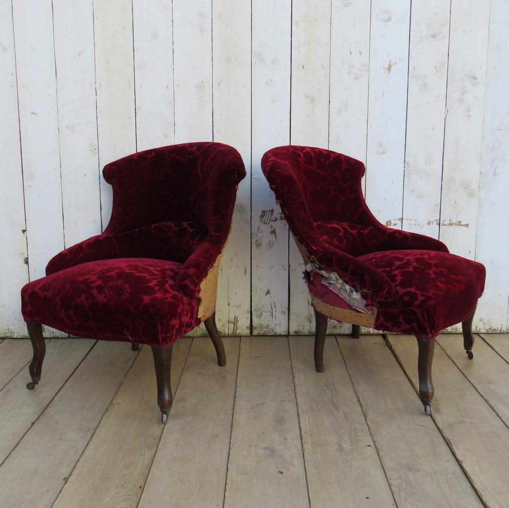 Pair of Antique French Boudior Slipper Nursing Tub Chairs