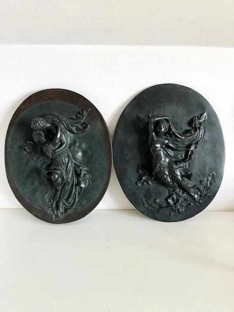 Pair of Antique French Cast Bronze Plaques, After J Coujon, F Barbedienne