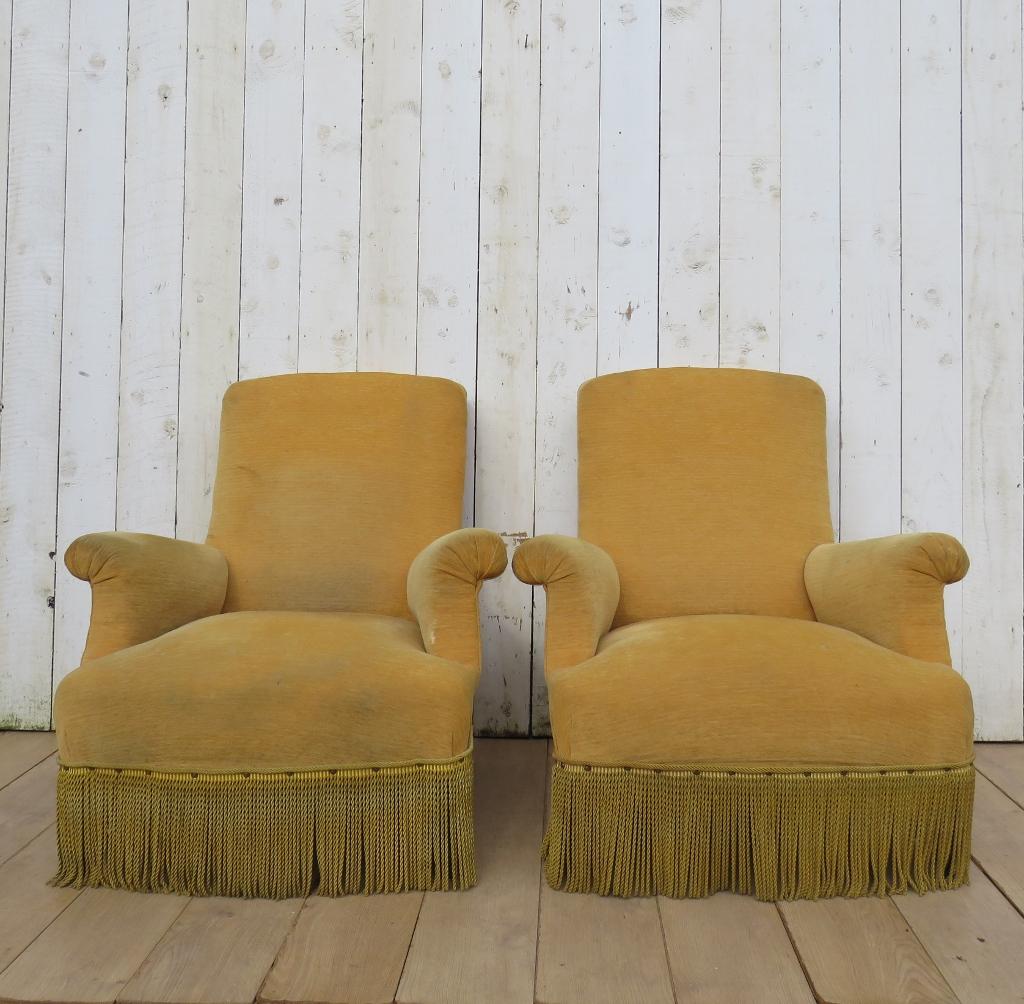 Pair Of Antique French Deep Seated Napoleon III Armchairs
