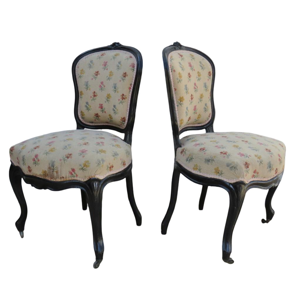 This Pair of Antique French Ebonised Salon Side Chairs is located in West Sussex, United Kingdom