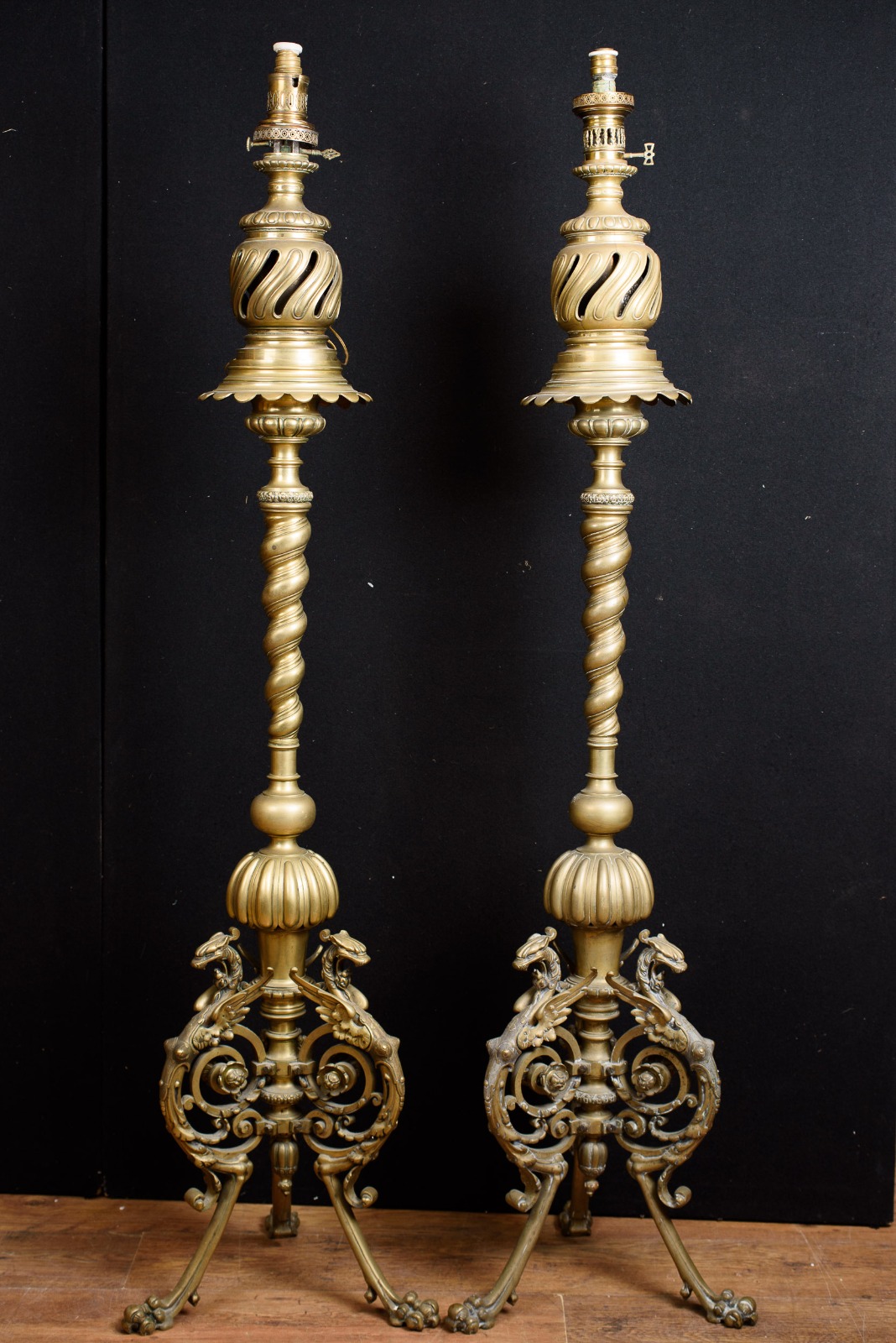Pair of Antique French Empire Bronze Floor Lamps c.1880