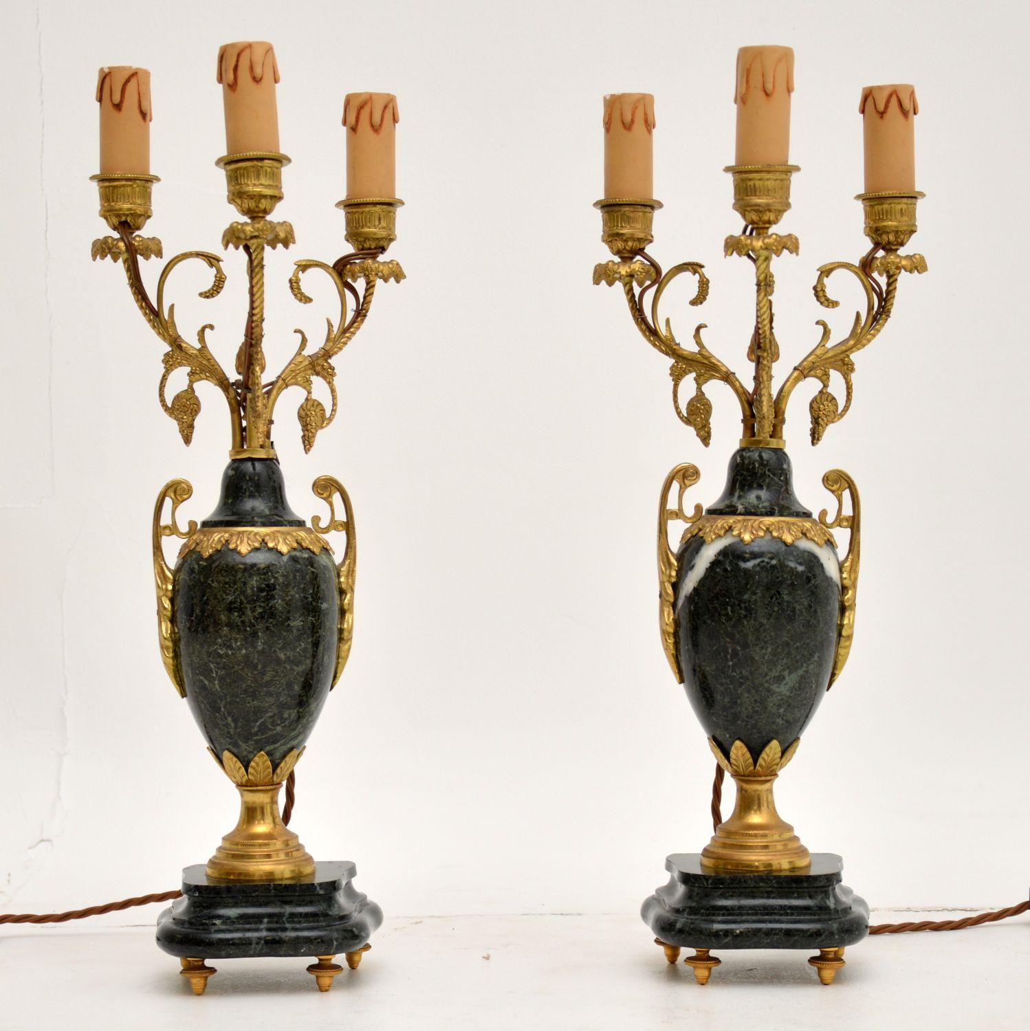 Pair of Antique French Gilt Metal & Marble Lamps
