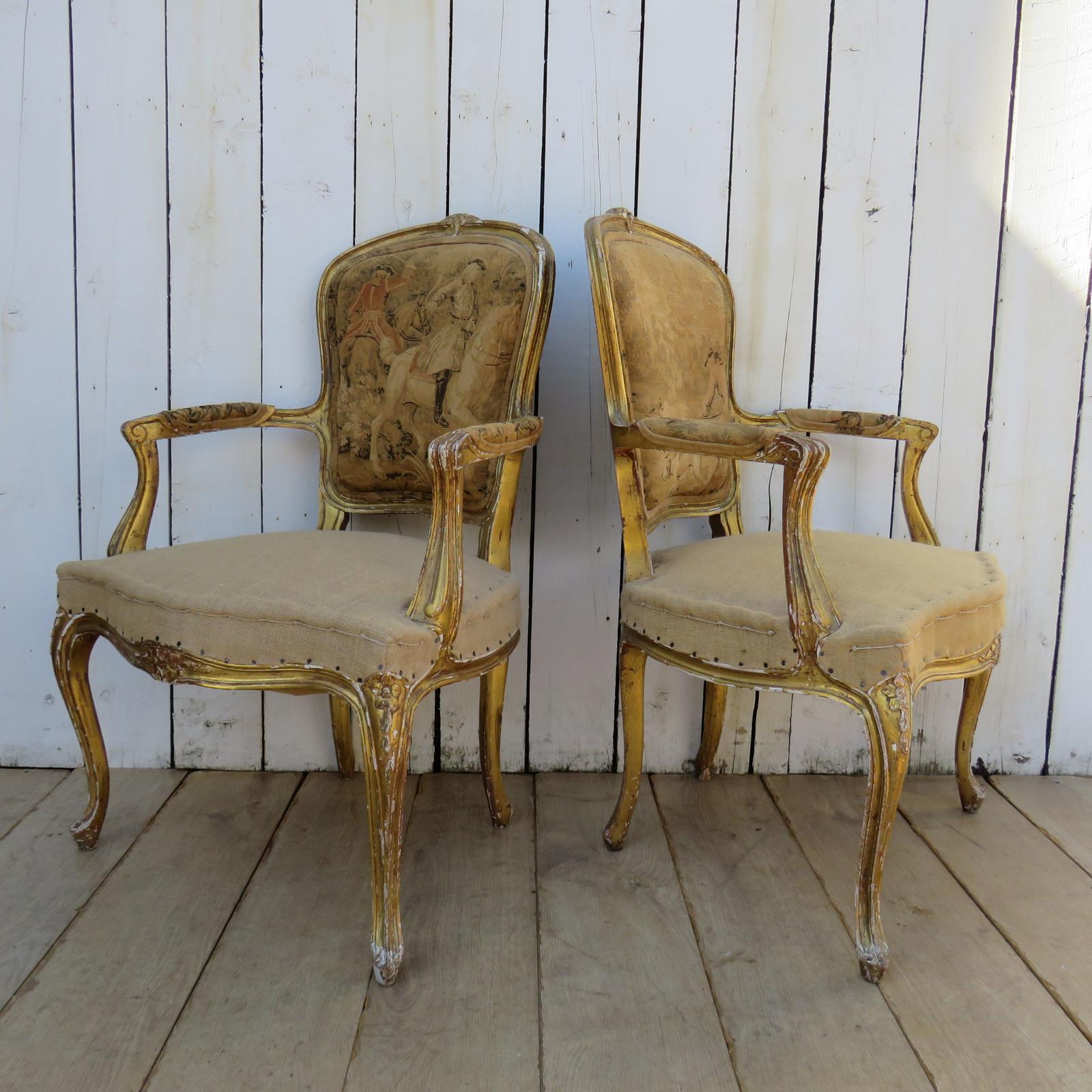 Pair of Antique French Giltwood Fauteuil Armchairs