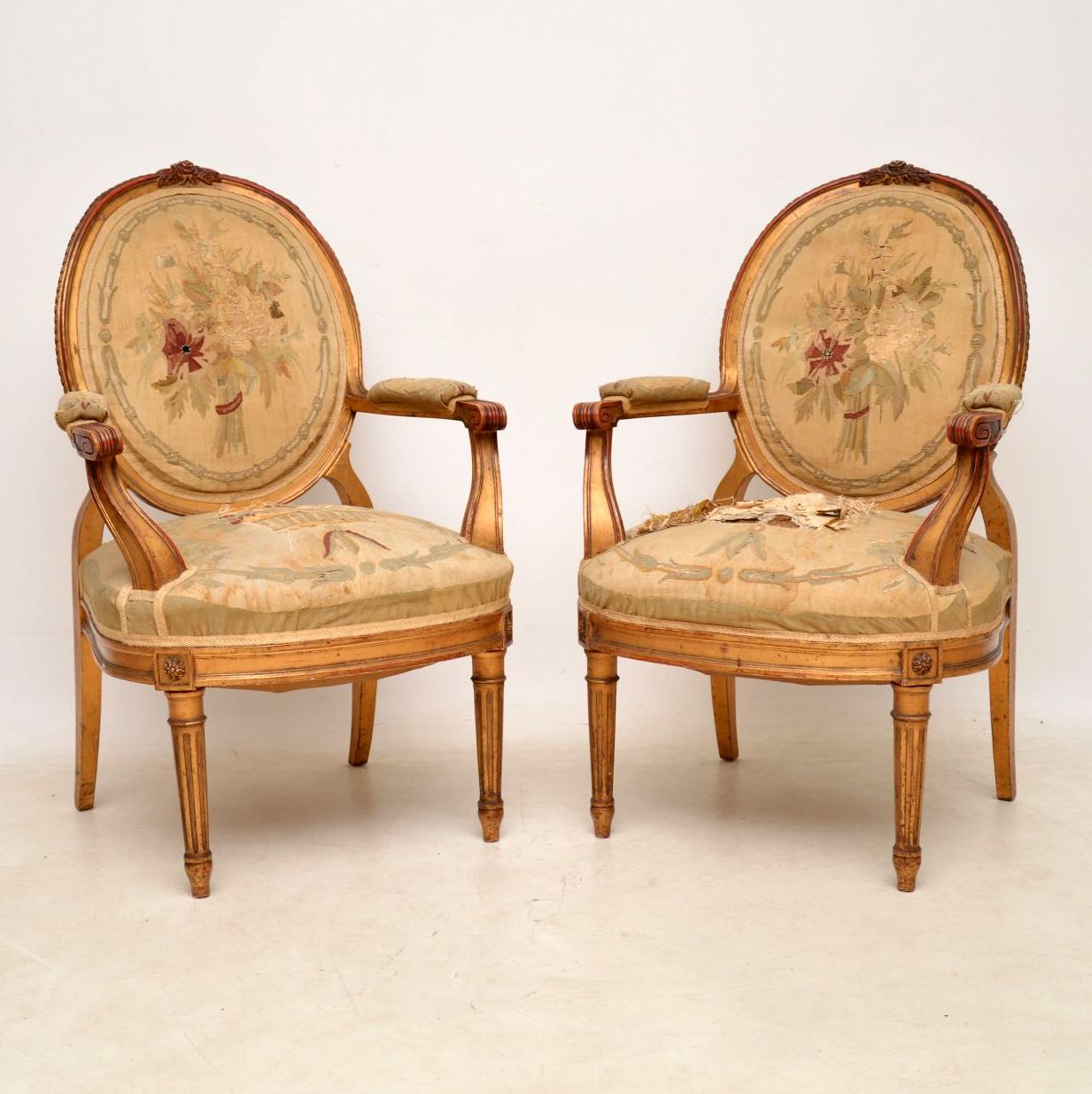 Pair of Antique French Giltwood Salon Armchairs (1 of 1)