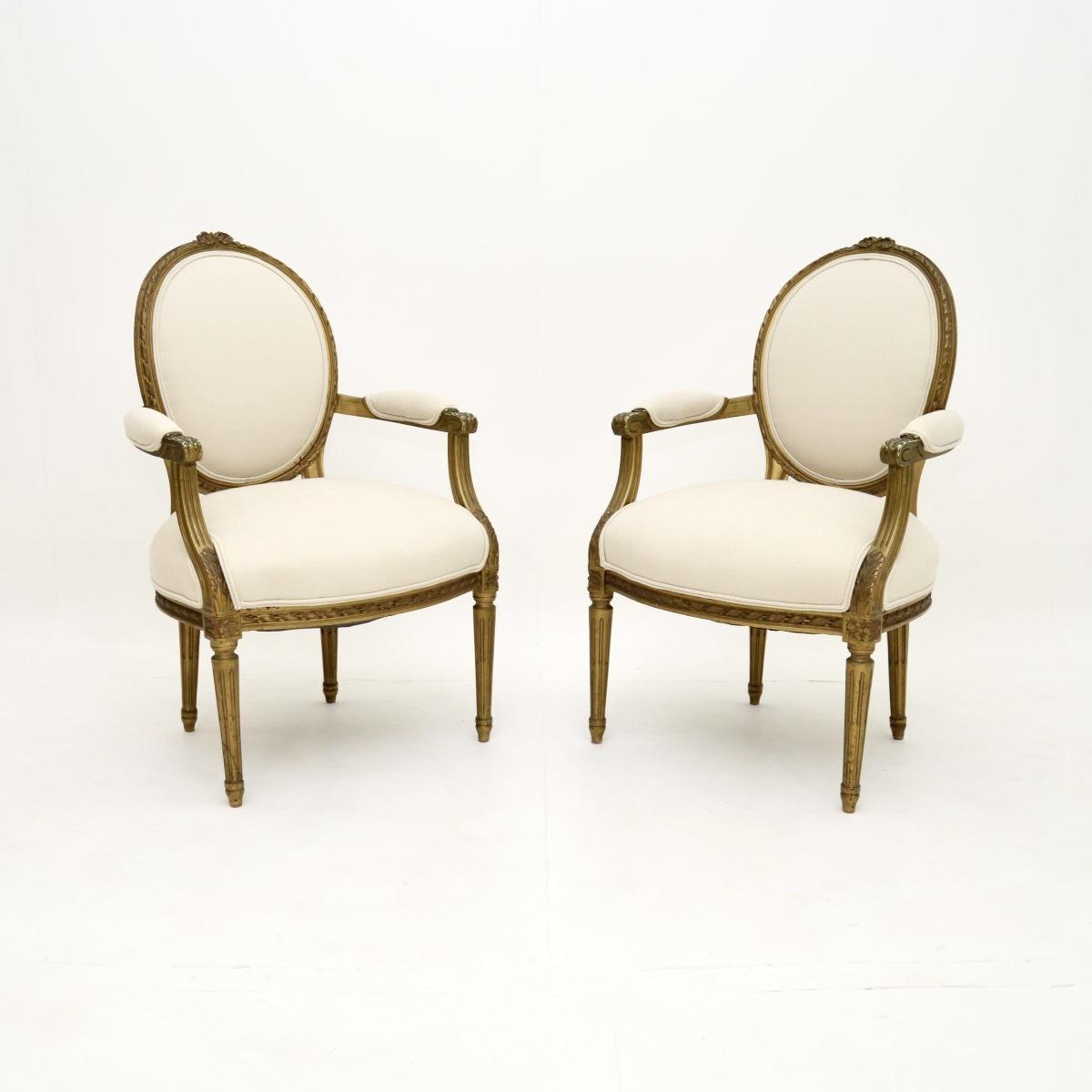 Pair of Antique French Giltwood Salon Chairs (1 of 10)