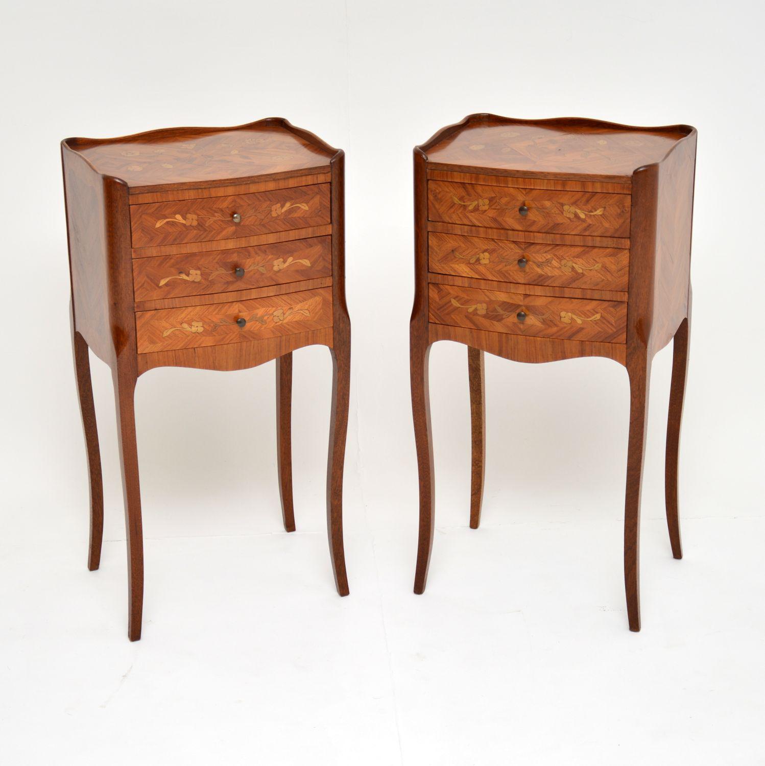 Pair of Antique French Inlaid Marquetry Bedside Tables