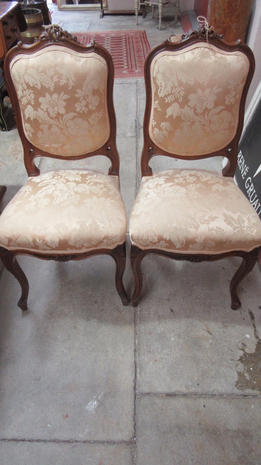 Pair of Antique French Louis XV Style Walnut Chairs