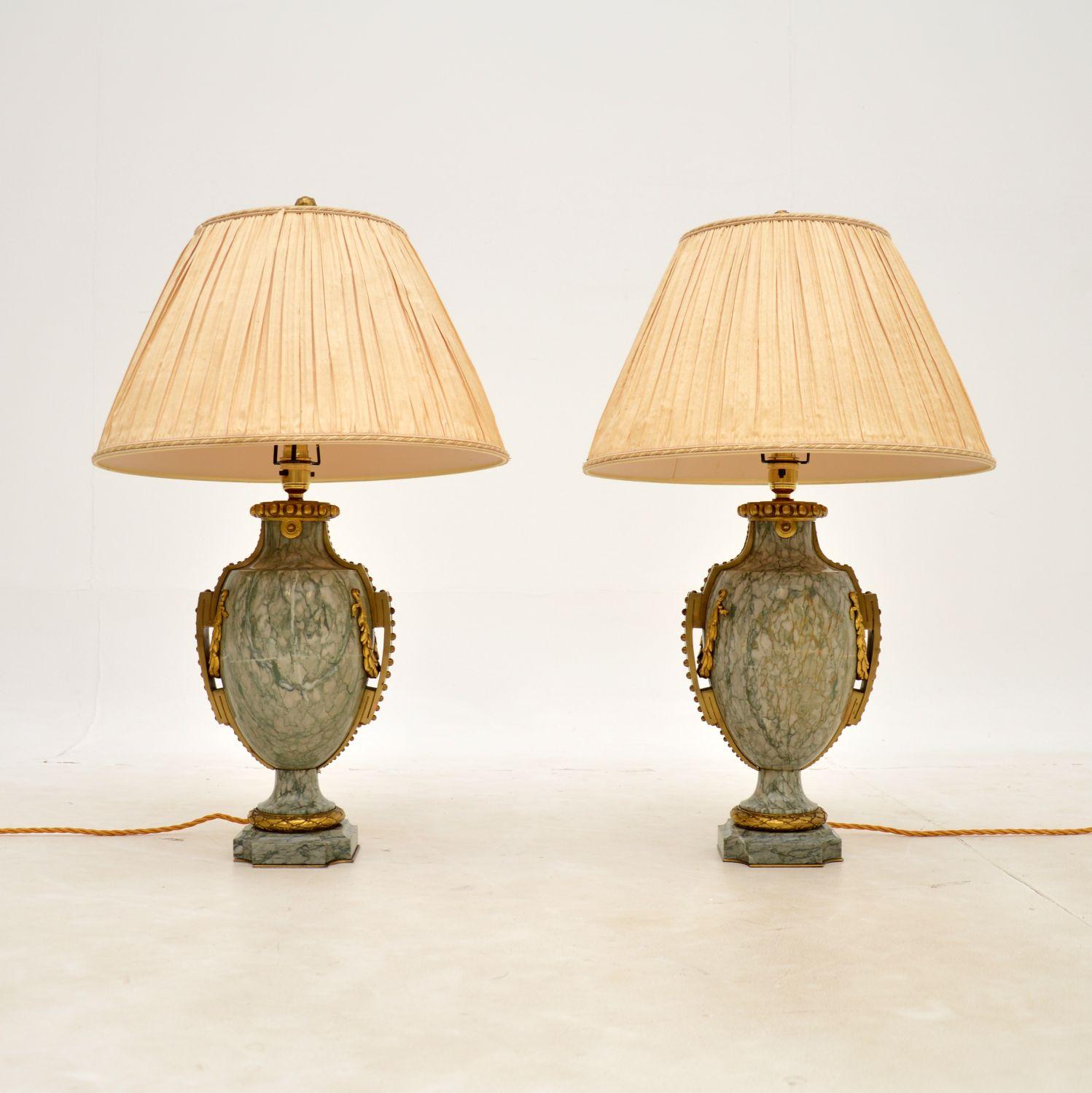 Pair of Antique French Marble & Gilt Bronze Table Lamps