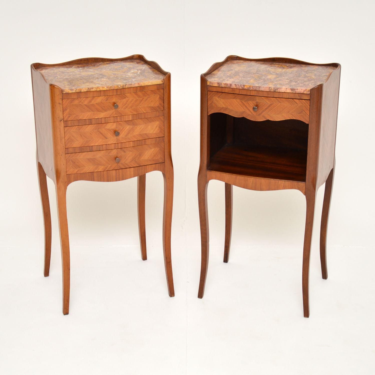 Pair of Antique French Marble Top Bedside Cabinets