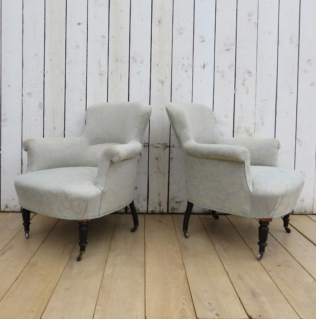 Pair of Antique French Napoleon III Tub Chairs