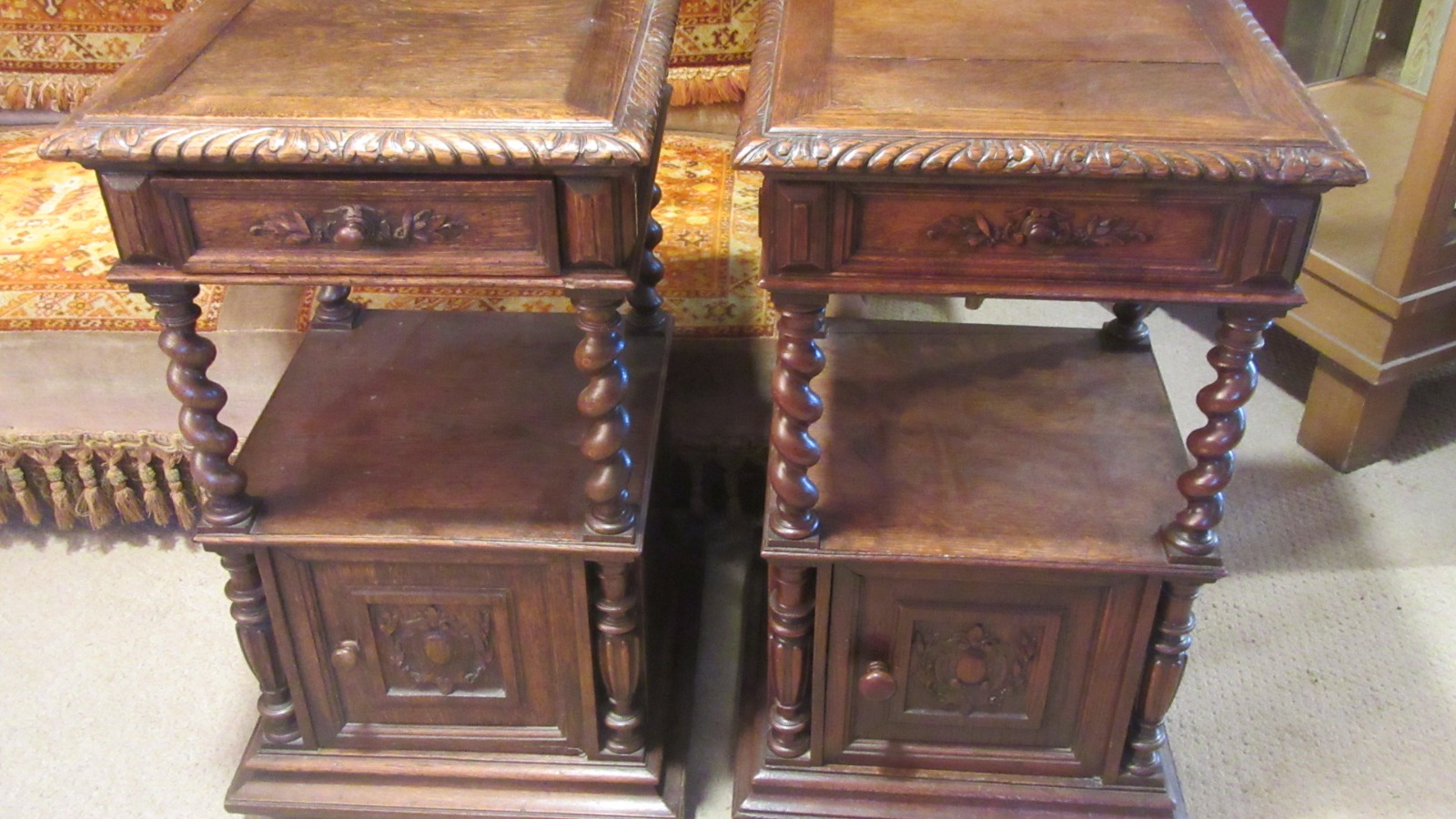 Pair of Antique French Oak Barley Twist Bedside Cabinets