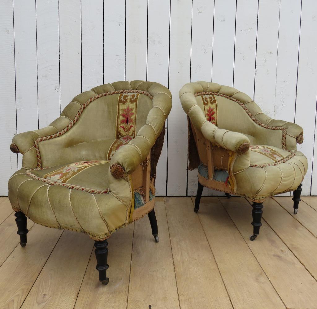 Pair of Antique French Pie Crust Tub Armchairs for re-upholstery