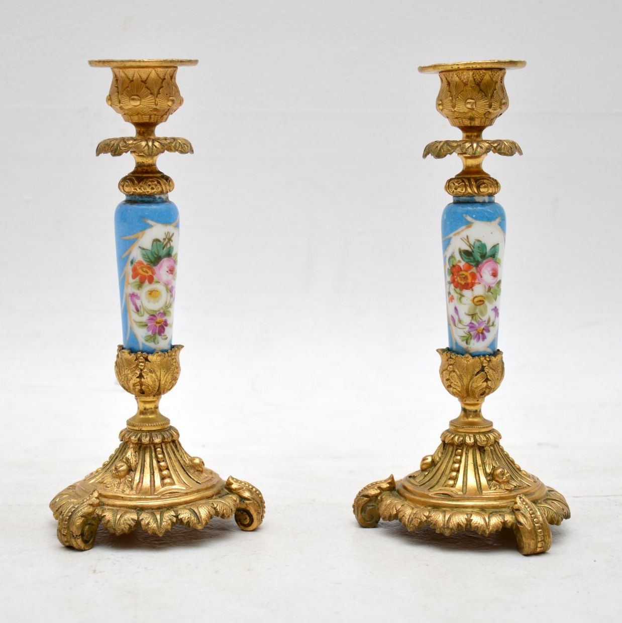 Pair of Antique French Sevres Porcelain & Ormolu Candlesticks (1 of 1)