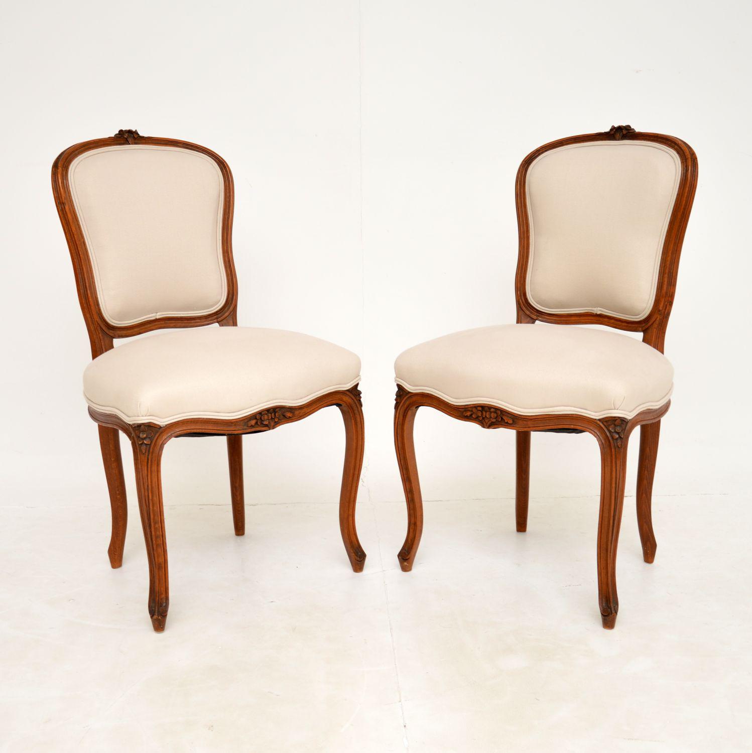 Pair of Antique French Solid Walnut Side Chairs (1 of 8)