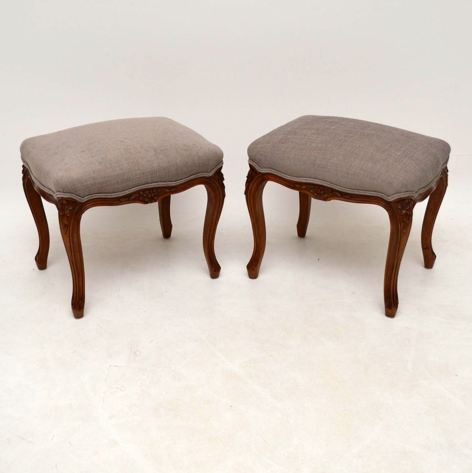 Pair of Antique French Walnut Upholstered Stools