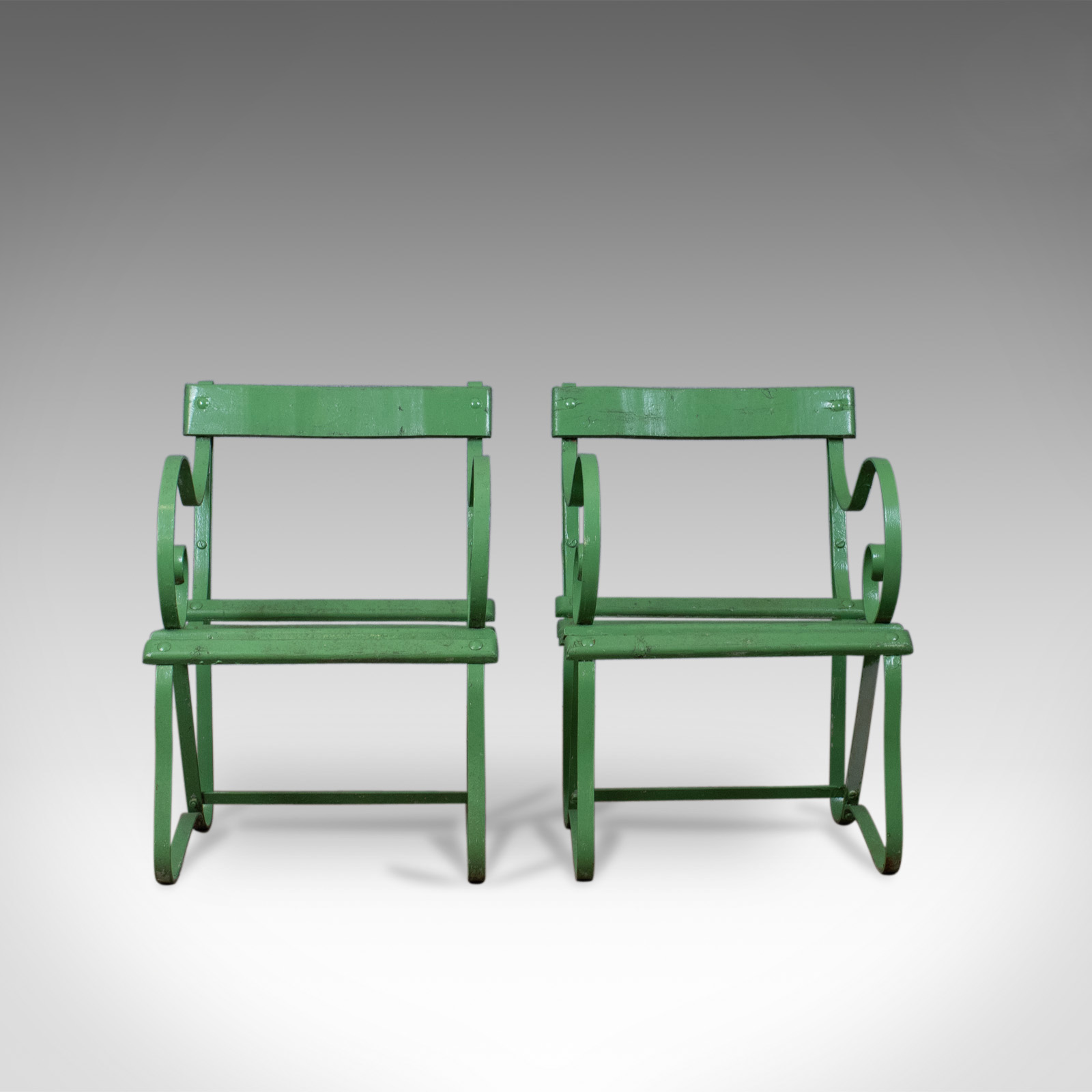 Pair of Antique Garden Chairs, Painted, English Victorian, Iron, Hardwood c.1880