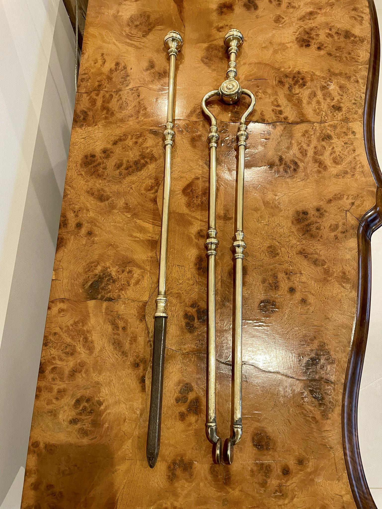 Pair of Antique George III Brass Fire Irons (1 of 7)
