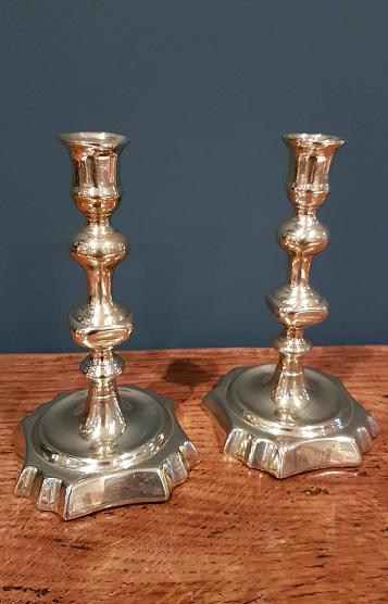 Pair of Antique George III Period Seamed Brass Candlesticks
