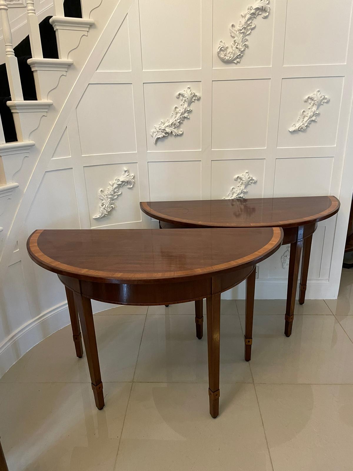 Pair of Antique George III Quality Figured Mahogany Demi Lune Console Tables