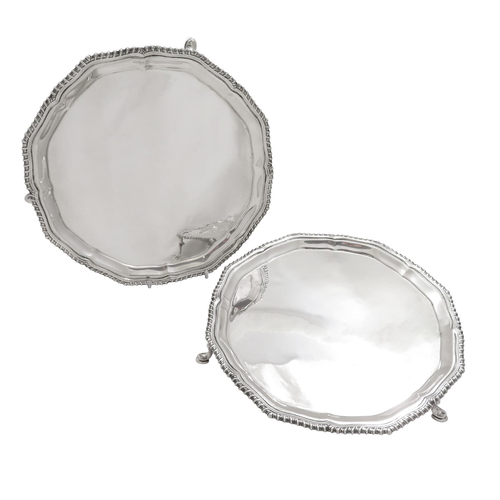 Pair of Antique George V Sterling Silver 8" Trays 1924